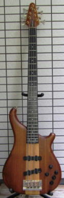 1988年に購入。1992年にフレットレスに改造。カシオペアにいた櫻井哲夫氏が弾いていたモデルですが、弦間がとても狭く5弦ベースとしてはネックの細いベースです。これはパッシブです。今は普通の4弦に高いC弦を張った構成で使ってます。